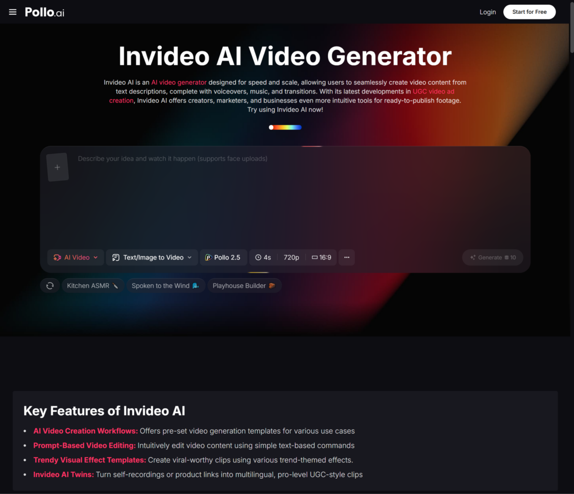 For content teams that are thinking about how written content might be extended into video formats — short-form video summaries, animated social clips, or presentation-style video content — InVideo AI is a Pollo AI reference resource that may be worth exploring for that next step in the content extension chain.